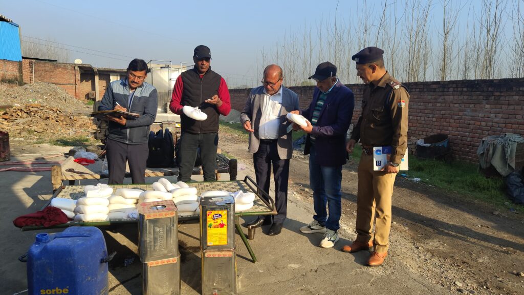 देहरादूनX। सचिव स्वास्थ व आयुक्त खाद्य सुरक्षा एवं औषधि प्रशासन डॉ आर राजेश कुमार के दिशा निर्देशों पर होली के मद्देनजर उत्तराखंड में मिलावटखोरी के खिलाफ राज्यव्यापी विशेष अभियान चलाया जा रहा है। इस अभियान के तहत 7 मार्च 2025 को देहरादून के विकासनगर क्षेत्र में एक प्राइवेट वाहन (बलेनो) से पनीर और मावा का वितरण करते हुए पाया गया। जांच में पता चला कि यह सामान हरिद्वार जिले के मैंगलौर क्षेत्र की एक निर्माण इकाई से लाया गया था। सूचना मिलते ही खाद्य सुरक्षा आयुक्त उत्तराखंड के निर्देश पर 9 मार्च 2025 को क्विक रिस्पांस टीम ने उक्त निर्माण इकाई पर छापा मारा।