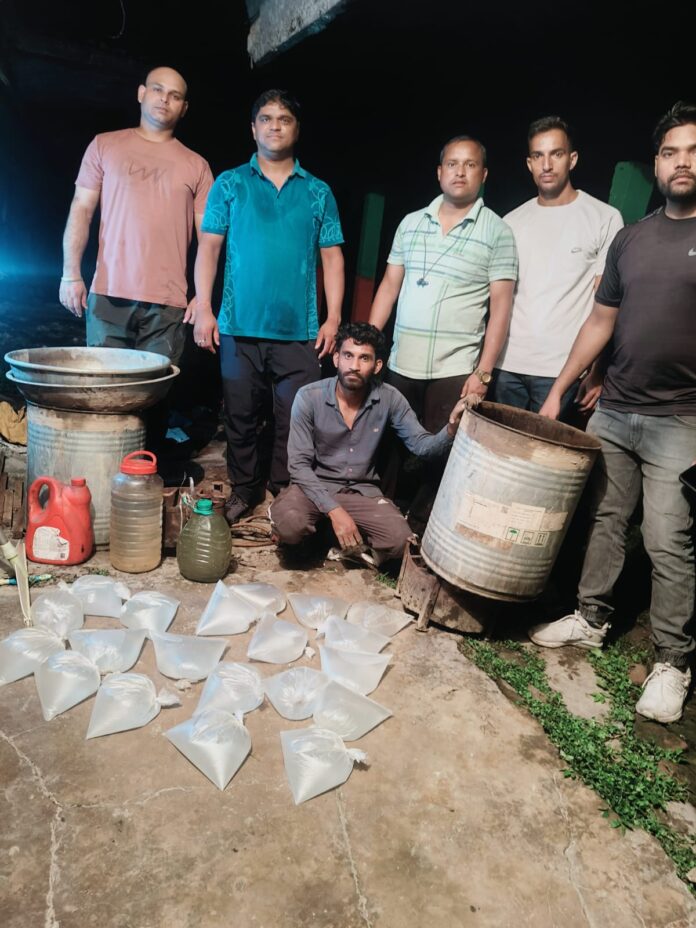 आबकारी विभाग ने खंडहर में की छापेमारी, 55 लीटर कच्ची शराब और छह ड्रम लहन बरामद