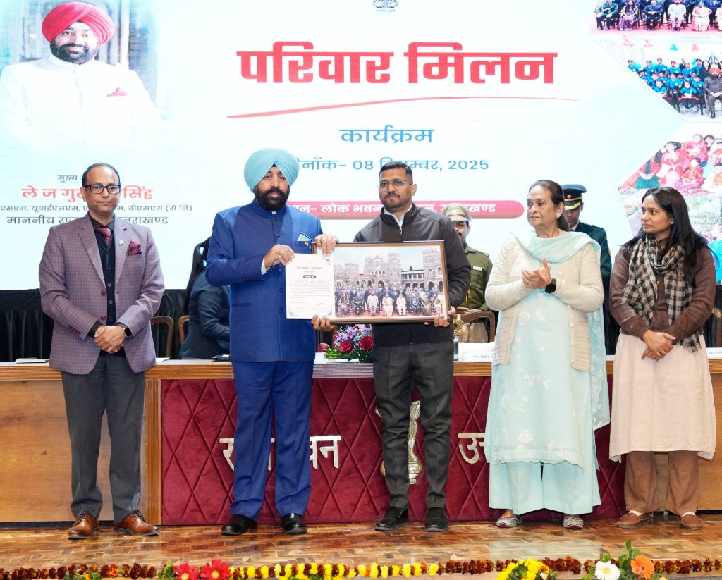 देहरादून,। लोक भवन देहरादून में “परिवार मिलन समारोह” आयोजित किया गया, जिसमें राज्यपाल लेफ्टिनेंट जनरल गुरमीत सिंह (से नि) एवं प्रथम महिला गुरमीत कौर ने लोक भवन परिवार के अधिकारियों, कर्मचारियों एवं उनके परिवारजनों के साथ प्रतिभाग किया। इस अवसर पर राज्यपाल ने कर्मचारियों की व्यक्तिगत एवं कार्यालय संबंधी समस्याएं विस्तार से सुनीं और उनके त्वरित एवं प्रभावी समाधान का आश्वासन दिया। राज्यपाल द्वारा प्रत्येक छह माह में परिवार मिलन कार्यक्रम आयोजित किया जाता है, जिसके माध्यम से लोक भवन में कार्यरत कार्मिकों की समस्याओं का गंभीरतापूर्वक संज्ञान लेकर उनका समाधान किया जाता है।