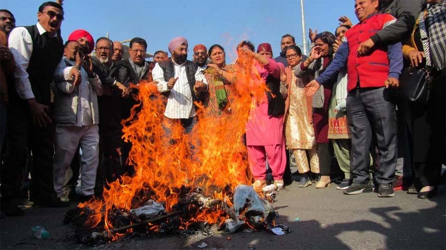 देहरादून,। उत्तराखंड के बहुचर्चित अंकिता भंडारी हत्याकांड में लगातार हो रहे नए खुलासों के विरोध में गुरूवार को महानगर कांग्रेस कमेटी देहरादून के अध्यक्ष डॉ. जसविंदर सिंह गोगी के नेतृत्व में कांग्रेस पदाधिकारियों एवं कार्यकर्ताओं ने भाजपा सरकार का पुतला दहन कर जोरदार विरोध प्रदर्शन किया। डॉ. गोगी ने कहा अंकिता भंडारी हत्याकांड केवल एक अपराध नहीं, बल्कि सत्ता के संरक्षण में सच को दबाने का उदाहरण है। भाजपा सरकार ने साक्ष्य मिटाने का काम किया है। कांग्रेस पार्टी पीड़िता को न्याय दिलाने के लिए सड़क से सदन तक संघर्ष जारी रखेगी। भाजपा विधायक सुरेश राठौर की पत्नी उर्मिला सनावर द्वारा हत्याकांड में शामिल वीआईपी का नाम दुष्यन्त गौतम उर्फ गट्टू के रूप में उजागर किया जाना तथा भाजपा की पूर्व जिला पंचायत सदस्य आरती गौड द्वारा वनन्तरा रिसॉर्ट पर स्थानीय विधायक रेणु बिष्ट के इशारे पर बुलडोजर चलाकर साक्ष्य मिटाने के आरोप, यह साबित करते हैं कि अंकिता भंडारी हत्याकांड में भाजपा का राज्य और शीर्ष नेतृत्व पूरी तरह संलिप्त है।डॉ. गोगी ने कहा कि भाजपा के राष्ट्रीय महामंत्री एवं प्रदेश प्रभारी का नाम सामने आने के बाद इस हत्याकांड में सैकड़ों सवाल खड़े हो गए हैं, जिनका उत्तर आज भी मुख्यमंत्री पुष्कर सिंह धामी और पुलिस महानिदेशक देने से बच रहे हैं। उन्होंने कहा कि मुख्यमंत्री और पुलिस को भाजपा के प्रवक्ता या अपराधियों के संरक्षक के रूप में नहीं, बल्कि जनता के सेवक के रूप में जवाब देना चाहिए। इस मौके पर प्रदेश उपाध्यक्ष सूर्यकांत धस्मानाजिस प्रकार भाजपा नेताओं के नाम इस जघन्य अपराध से जुड़ते जा रहे हैं, उससे सरकार की मंशा स्पष्ट हो गई है। यदि सरकार में नैतिकता शेष है तो उच्च स्तरीय, निष्पक्ष जांच कराकर दोषियों को कठोरतम सजा दिलाई जाए।” उन्होंने कहा कि राज्य की पुलिस वीआईपी के नाम का खुलासा करने में पूरी तरह विफल रही। पुलिस द्वारा मामले को उलझाने के लिए “वीआईपी रूम” की बात कही जाती रही, जबकि अब भाजपा नेताओं और उनके परिजनों के बयानों से स्पष्ट हो गया है कि अपराधियों को राजनीतिक संरक्षण दिया गया। इस मौके पर पर मुख्य रूप से प्रदेश उपाध्यक्ष पूरन सिंह रावत, सुनीता प्रकाश,जगदीश धीमन, प्रतिमा सिंह, उर्मिला ढौंढियाल, अर्जुन पासी, अभिषेक तिवारी,वीरेंद्र बिस्ट, सावित्री थापा, सुनील जैसवाल, राजकुमार जैसवाल,दिनेश कौशल, पूनम कंडारी, अनूप कपूर, वीरेंद्र पंवार, फारूक अहमद, शकील मंसूरी, दिग्विजय चैहान, राजेश पुंडीर, मनीष गर्ग, सूरज छेत्री,अमन,गुरनैन सिंह, संजय भारती, अंजू भारती,अशोक कुमार, विजेंद्र चैहान , नितेश राजोरिया,रामबाबू,हेमंत, सौरभ शर्मा, शिवांशु जायसवाल , प्रवीण भारद्वाज , दलबीर भरड़वाल,म