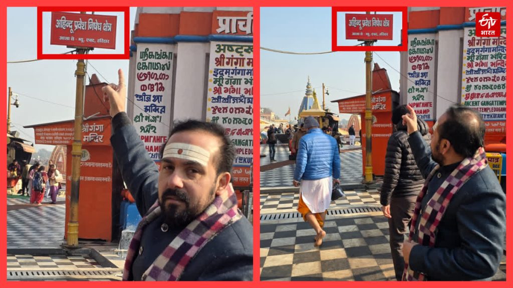 हरिद्वार,। धर्मनगरी हरिद्वार स्थित विश्व प्रसिद्ध हर की पैड़ी क्षेत्र में गैर हिन्दुओं के प्रवेश पर रोक लगाने के पोस्टर लगाए गए हैं। लगातार उठ रही मांग के बीच ये पोस्टर लगाए गए हैं। पोस्टर में साफ लिखा है कि अहिंदुओं का प्रवेश निषेध है। ये पोस्टर हर की पैड़ी क्षेत्र की व्यवस्थाएं देखने वाली संस्था गंगा सभा की ओर से लगाए गए हैं। पोस्टरों में लिखा गया है कि यह क्षेत्र 1916 के म्युनिसिपल एक्ट, हरिद्वार के अंतर्गत आता है और यहां अहिंदुओं का प्रवेश वर्जित है। गौरतलब है कि हरिद्वार में हर की पैड़ी सनातन धर्म और आस्था का प्रमुख केंद्र है। रोजाना यहां हजारों श्रद्धालु गंगा स्नान और दान पुण्य करने के लिए आते हैं। श्री गंगा सभा संस्था हर की पैड़ी क्षेत्र की व्यवस्थाएं देखने का कार्य करती है। महामना पंडित मदन मोहन मालवीय द्वारा संस्था की नींव रखी गई थी। श्री गंगा सभा के वर्तमान अध्यक्ष नितिन गौतम ने हर की पैड़ी क्षेत्र में गैर हिन्दुओं के प्रवेश पर रोक लगाने की मांग की है। उनकी इस मांग का साधु संतों और हिंदूवादी संगठनों से जुड़े लोग भी समर्थन कर रहे हैं। उनका कहना है कि धार्मिक मर्यादा बनाए रखने के लिए गैर हिंदुओं का प्रवेश प्रतिबंधित किया जाना चाहिए।