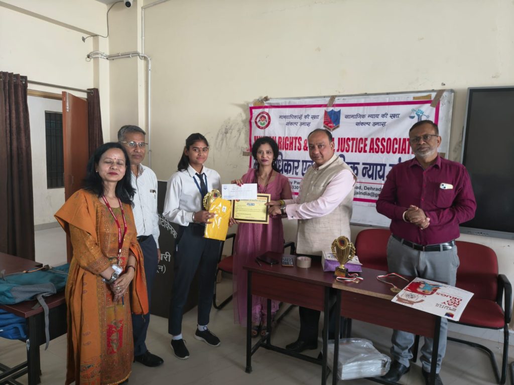 देहरादून,। मानवाधिकार एवं सामाजिक न्याय संगठन के राष्ट्रीय अध्यक्ष एवं गवर्नमेंट पॉलिटेक्निक रानी पोखरी के नोडल ऑफिसर सचिन जैन द्वारा विज्ञान प्रतियोगिता के छात्रों को पुरस्कृत किया गया पुरस्कृत होने वालों में सागर सिंह अंशिका हिमांशु कुकरेती अभय रावत पवन सिंह मनवाल इशांत नेगी विनोद सिंह ममता आर्यन सिंह गौरव रावत को प्रथम द्वितीय तृतीय पुरस्कार स्वरूप टी-शर्ट कैश प्राइज मोमेंटो मेडल और प्रशस्ति पत्र दिए गए ।