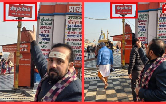 हरिद्वार,। धर्मनगरी हरिद्वार स्थित विश्व प्रसिद्ध हर की पैड़ी क्षेत्र में गैर हिन्दुओं के प्रवेश पर रोक लगाने के पोस्टर...